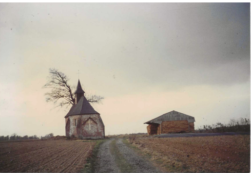 La photo suivante nous fait découvrir la chapelle dans un cadre campagnard bien différent de celui que nous connaissons actuellement.