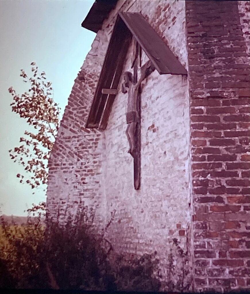 Ainsi, la photo ci-contre, qu’il a prise en 1961, montre le grand crucifix protégé par un auvent à l’arrière de la chapelle ; après sa « disparition », il fut remplacé, mais on a perdu son caractère.