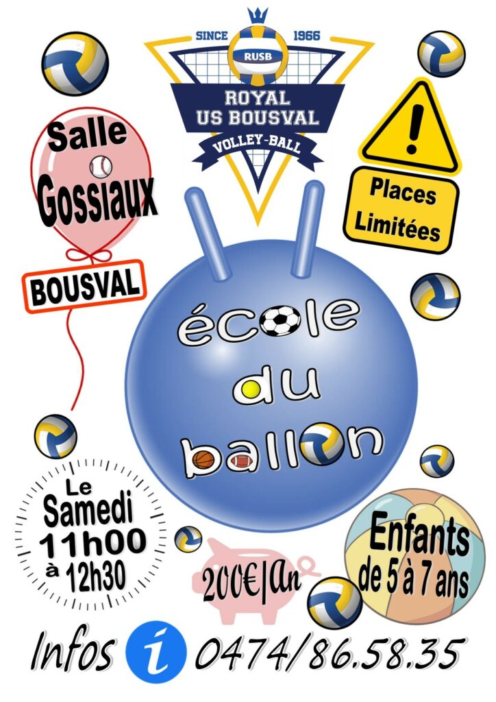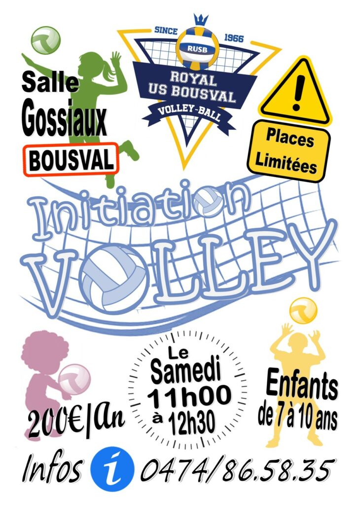 Infos : Jean-Noël Ghislain 0476 54 76 96 – Facebook Royal US Bousval Volley-Ball Club