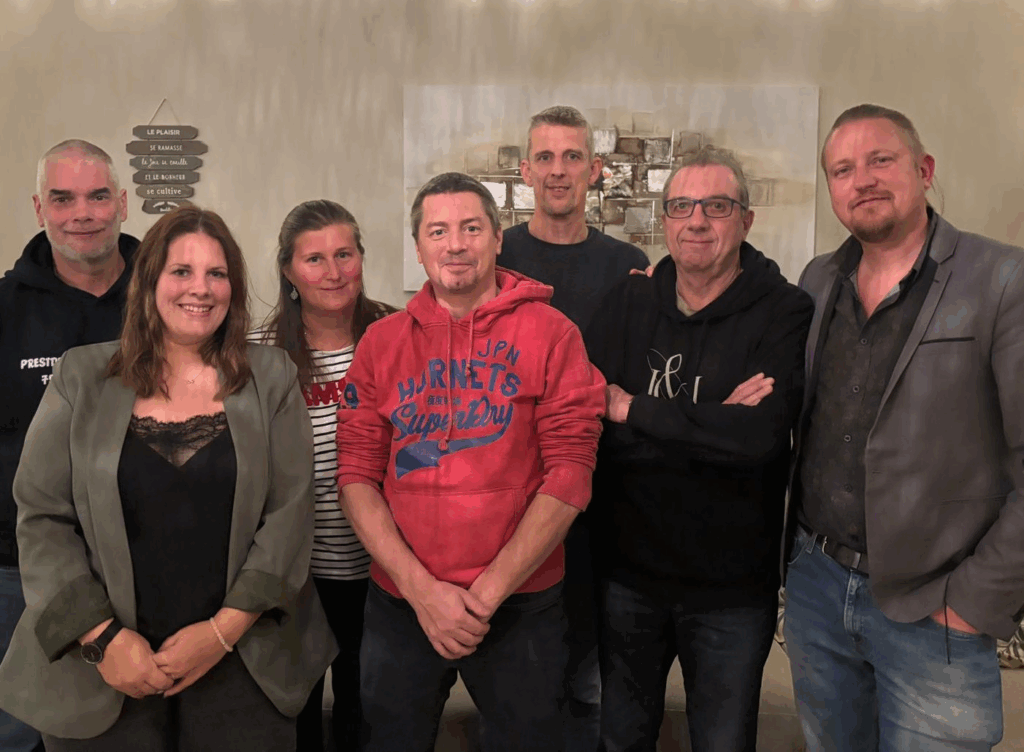 De gauche à droite : Jean-Noël Ghislain (président), Virginie Delsart (trésorière), Maïté Ferreyra (jeunes), Raphaël Ghislain (membre actif), Raphaël Delsart (secrétariat sportif), Freddy Clercq (secrétaire), Olivier Herman (festivités). Absente sur la photo : Anaëlle Delsart (responsable des enfants)